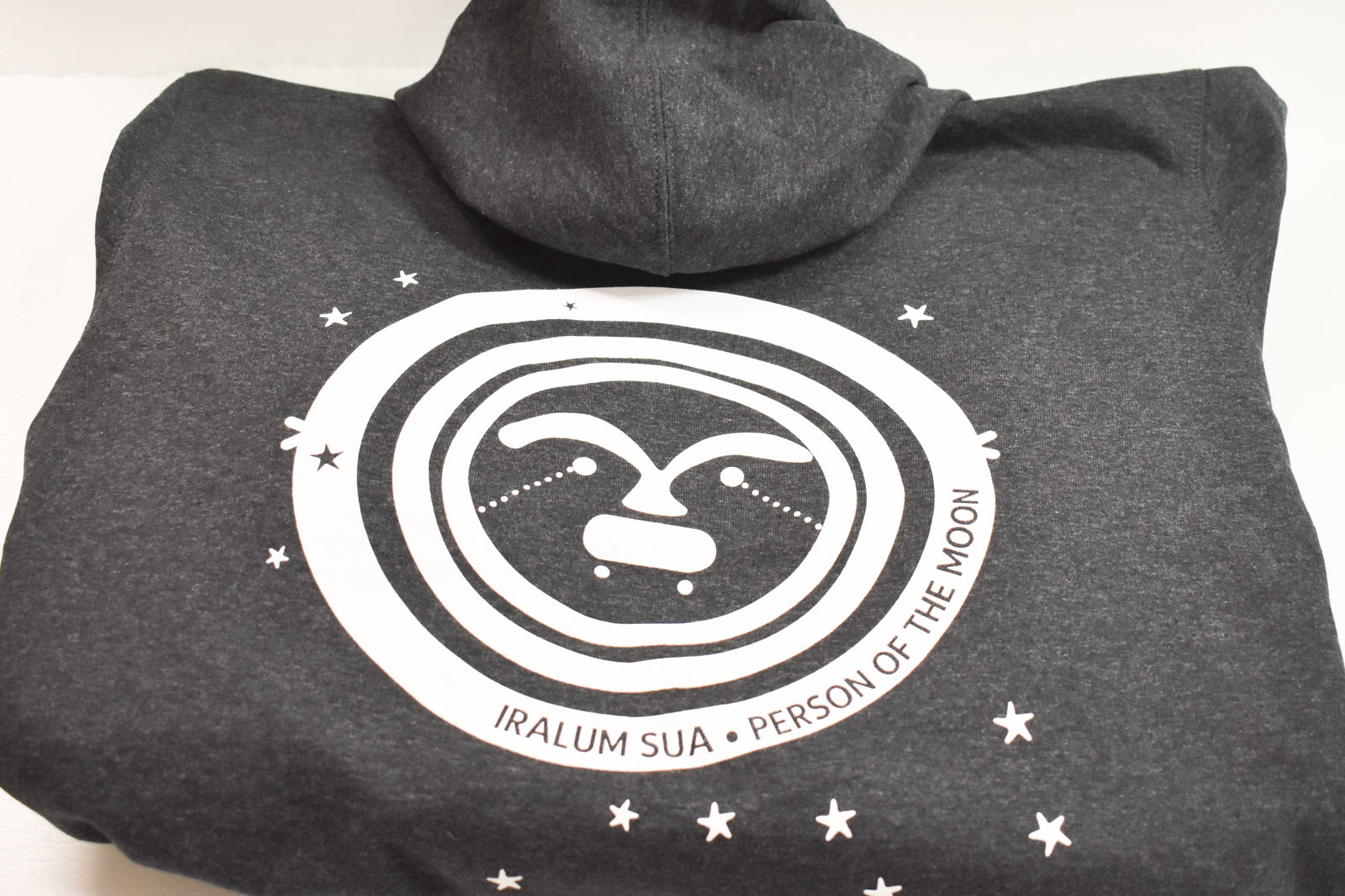 Soft and cozy recycled fabric hoodies with an Alutiiq Museum original design featuring Iralum Sua - Person of the Moon and the Big Dipper Constellation. Made from a blend of recycled cotton (60%) and polyester (40%), this charcoal grey zip up hoodie fits like a glove and will become a beloved outer layer. Sizes run small.