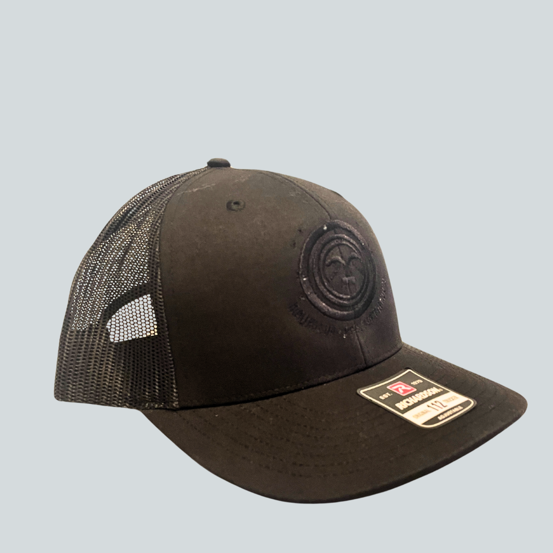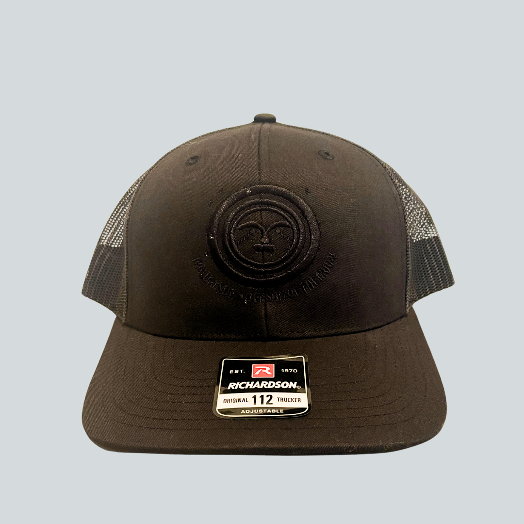 This black on black trucker hat is perfect for the warmer weather with the mesh back and rounded bill. With this hat being adjustable, you'll find the perfect fit with this hat.