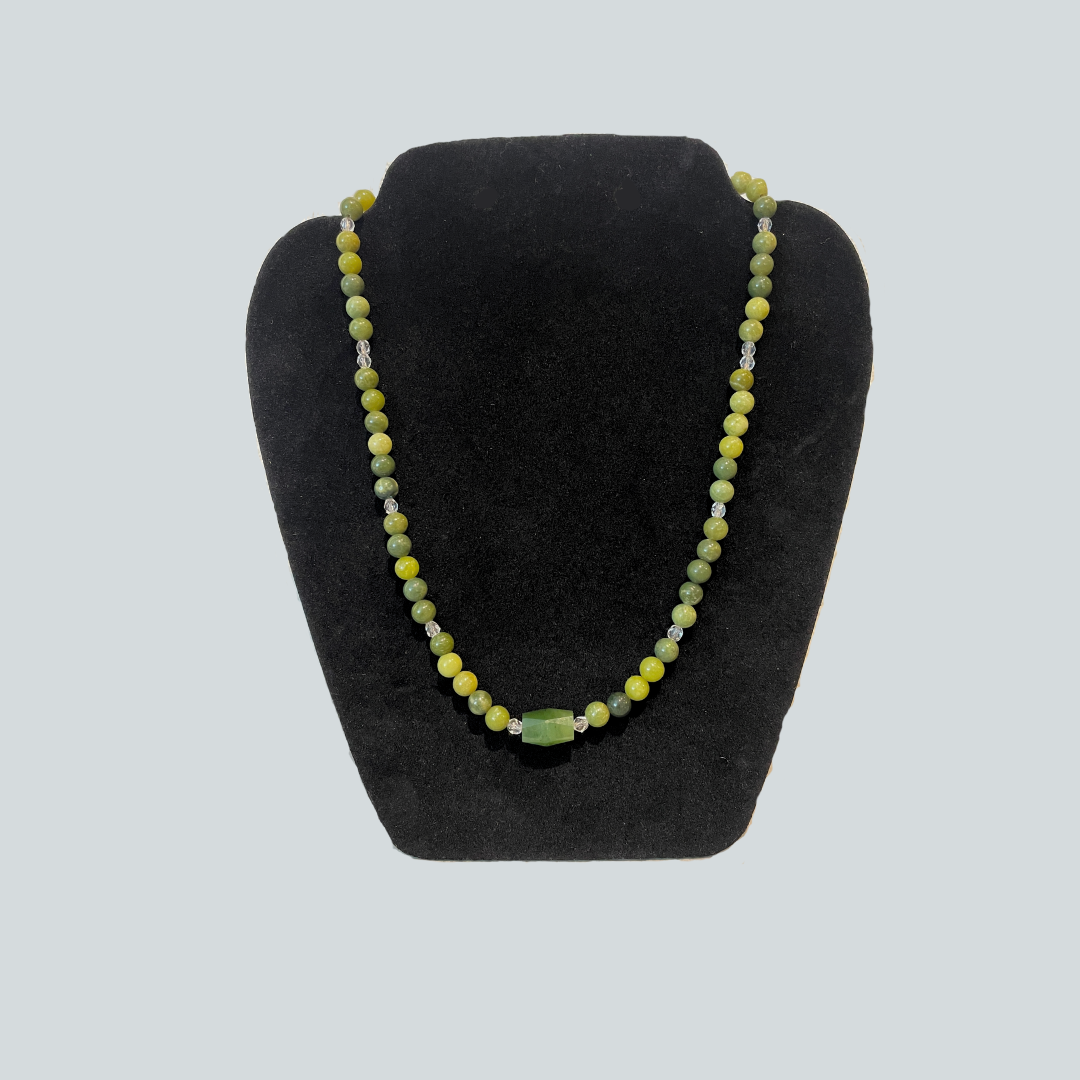 This handmade necklace is made by Alutiiq Seal Artist June Pardue. Hanging approximately 19" long, these stunning jade beads feel cool against the skin. If you have anybody who loves gemstones, this will make a wonderful gift.