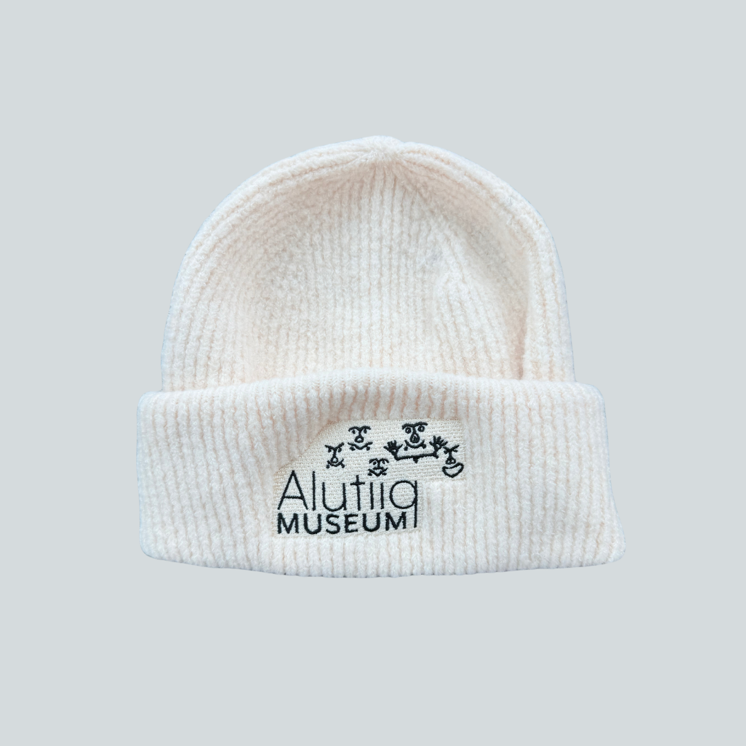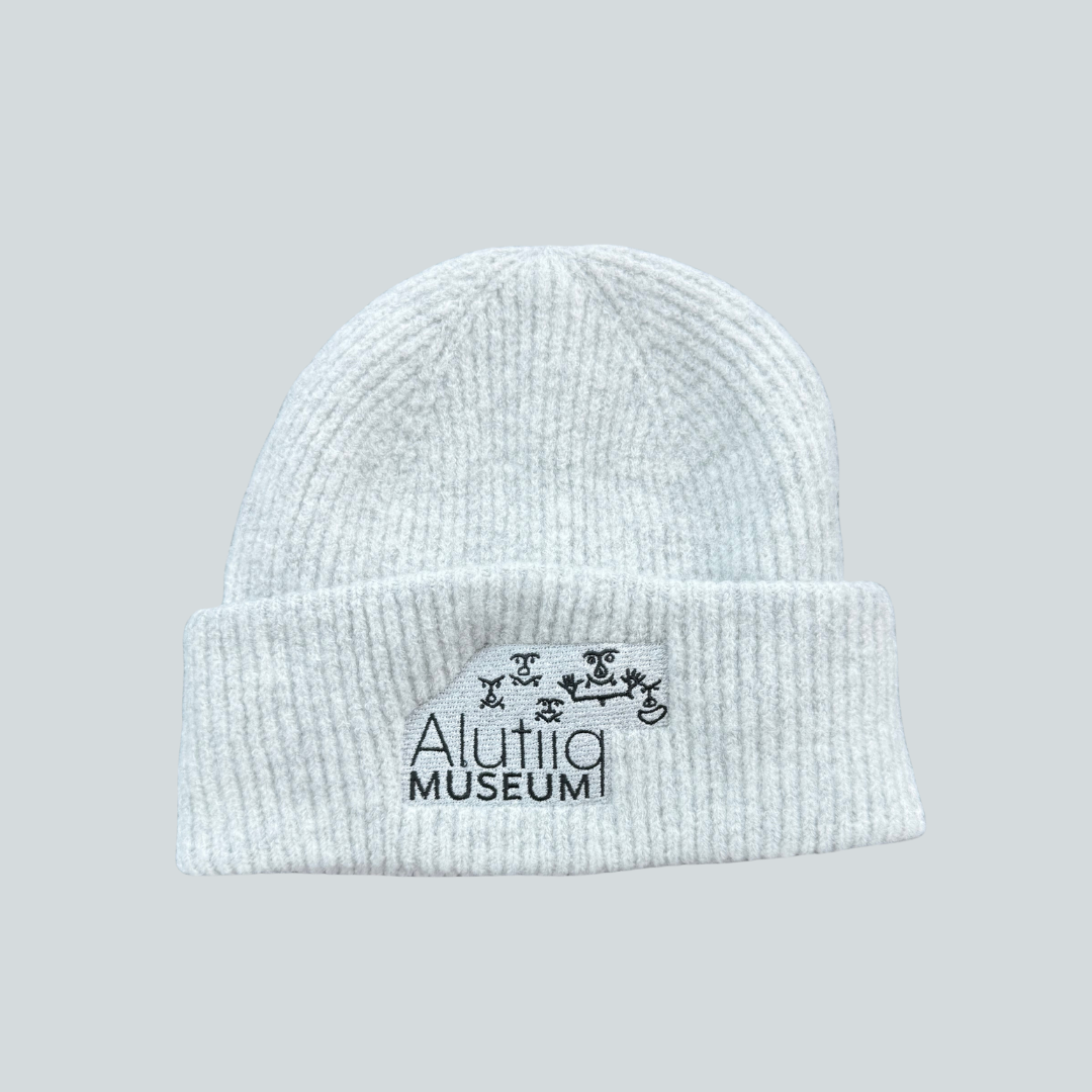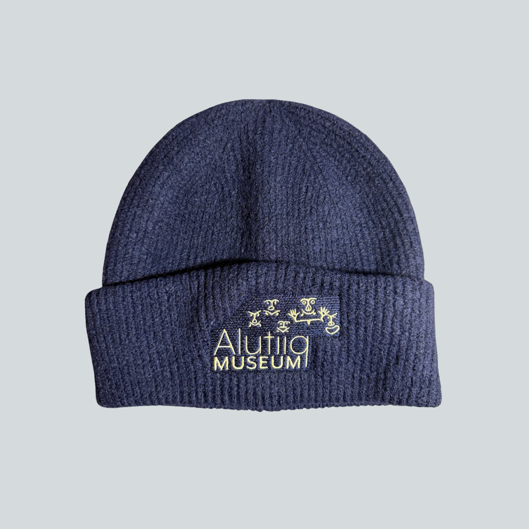 Show your love of Alutiiq/Sugpiaq culture by wearing our new cozy beanie. Featuring the museum’s logo with 1000 year-old petroglyph designs, this beanie is a perfect gift for the whole family. Made from an ultra-soft blend of recycled polyester, acrylic, and elastane, this beanie is as eco-friendly as it is luxurious.