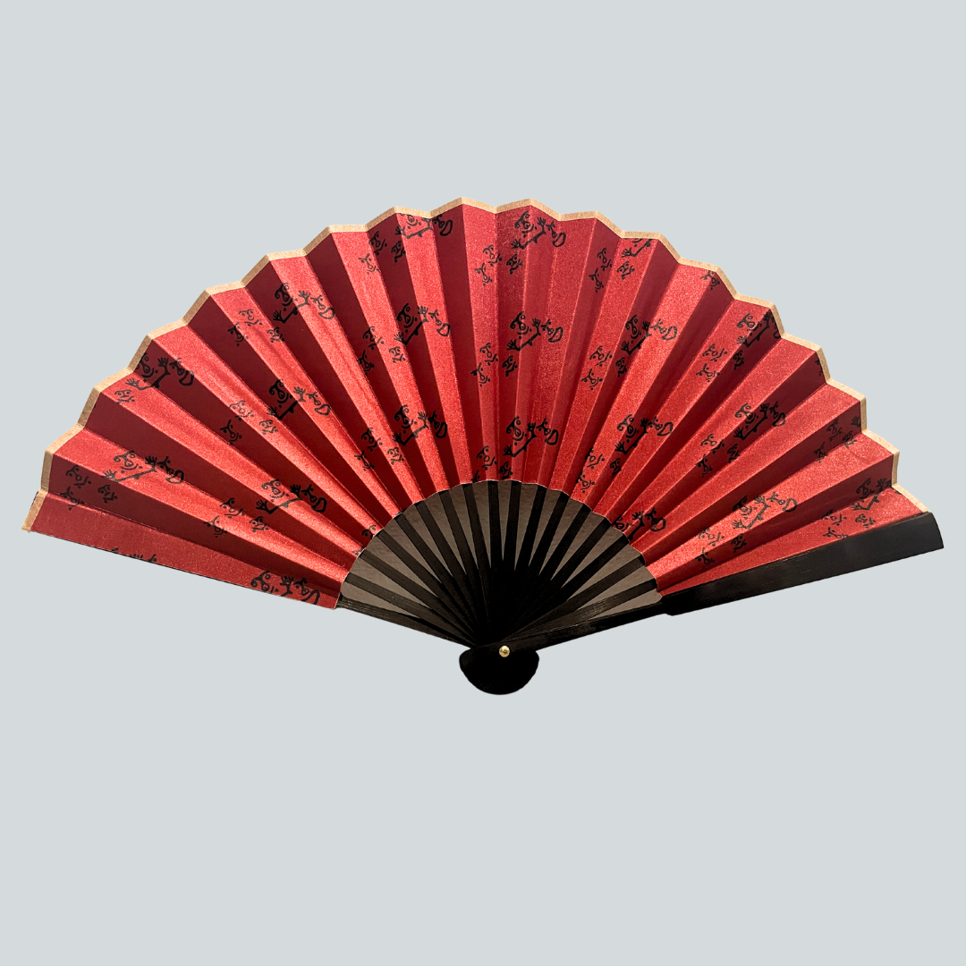 Cool yourself down this summer by using this hand fan. The black handle is comfortable to hold. The red of the fan has the repeating petroglyph throughout and it's topped with a beautiful tan color. With it being lightweight, it's easy to bring along on summer trips.