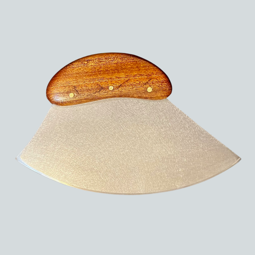 This beautiful Uluaq was created by artist Willard Church Jr. and is made for use or display. The blade is cut out from handsaw steel and the handle is hardwood.